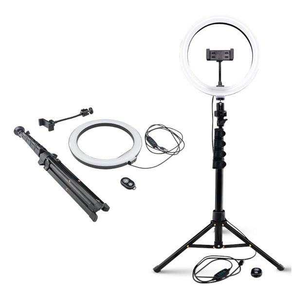 Pierścień LED 25,4 cm, 3 barwy światła, zasilanie USB 5 V, ściemniacz w przewodzie, uchwyt na smartf...