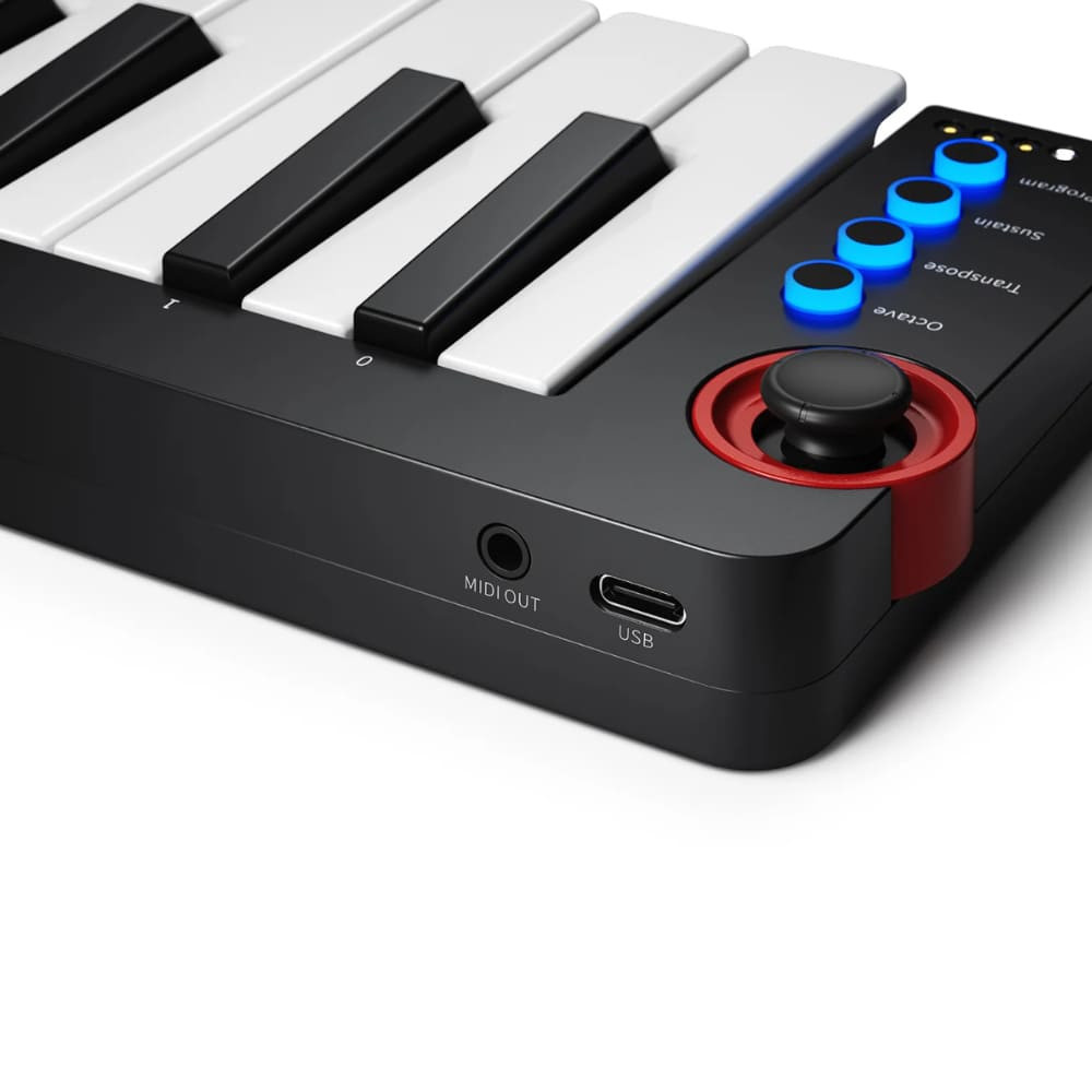 Mini klawiatura sterująca, 2 oktawy (25 klawiszy), tryby: octave, transpose, sustain, program, Plug and Play [Mac/PC], zasilanie przez USB-C, wyjście 3,5mm, MIDI OUT