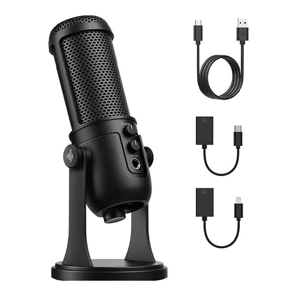 Mikrofon pojemnościowy, membrana 16 mm, charakterystyka zmienna, wejście USB-C i 6,5 mm TRS, wyjście 3,5mm zakres częstotliwości: 20 Hz – 20 kHz, próbkowanie: 16-bit / 48 kHz, wzmocnienia: -6 dB do +56 dB, stosunek szumu: 76 dB, kabel USC-C i adapter