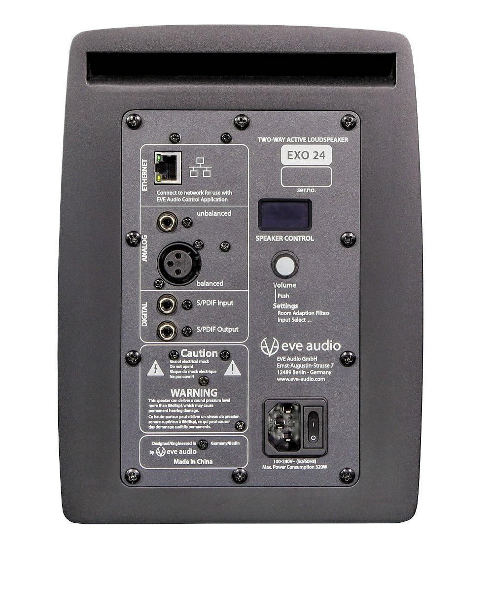 EVE Audio EXO 24 - 2-drożny monitor z 4-calowym głośnikiem niskotonowym, głośnikiem wysokotonowym EXO Precision AirMotion z falowodem GDC, wejściem/wyjściem S/PDIF (192 kHz/24 bity) i łącznością Ethernet do sterowania oprogramowaniem.