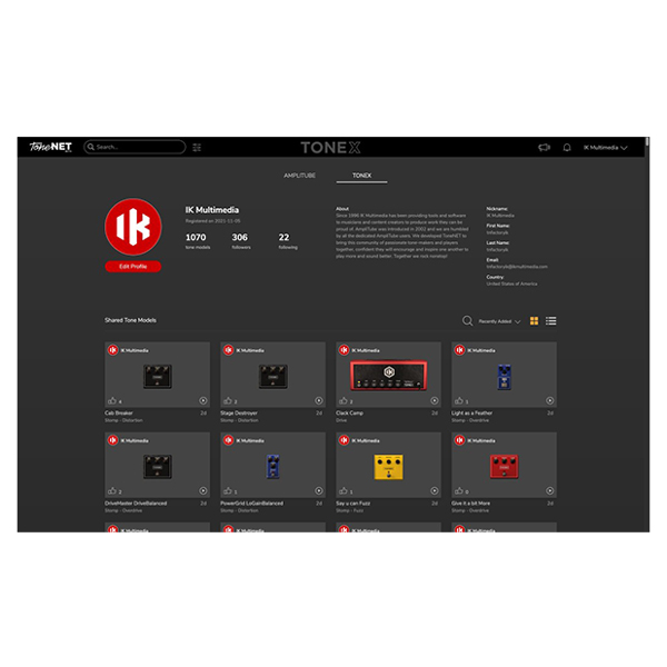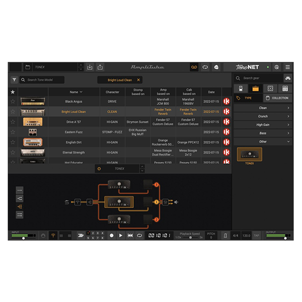 - Procesor gitarowy Tone Modelling, rejestracja i symulacja dowolnego brzmienia wzmacniacza, comba i efektu gitarowego za pośrednictwem aplikacji TONEX, reamping, wejścia [Line, from AMP], wyjścia [Cabinet, to AMP], wyjście audio XLR, w zestawie ToneX SE