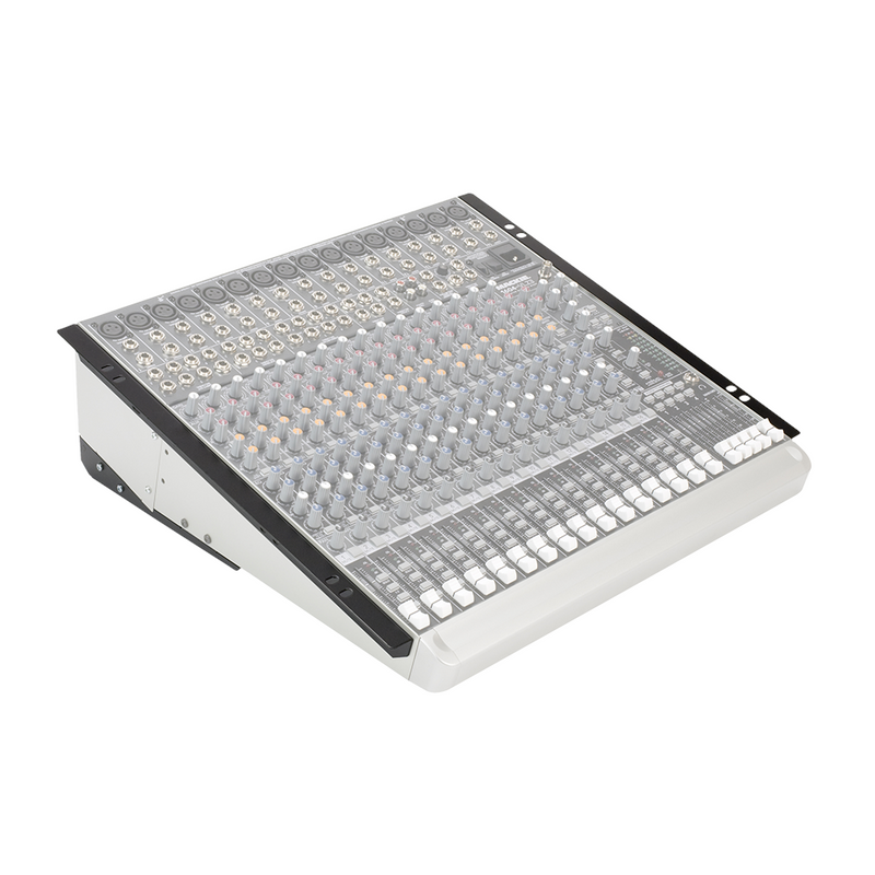 - Ten zestaw Mackie RotoPod pozwala na przekonfigurowanie miksera 1604VLZ4 lub innego kompatybilnego miksera 1604 do montażu w racku 19" tak, aby po zamontowaniu gniazda były dostępne z przodu miksera.