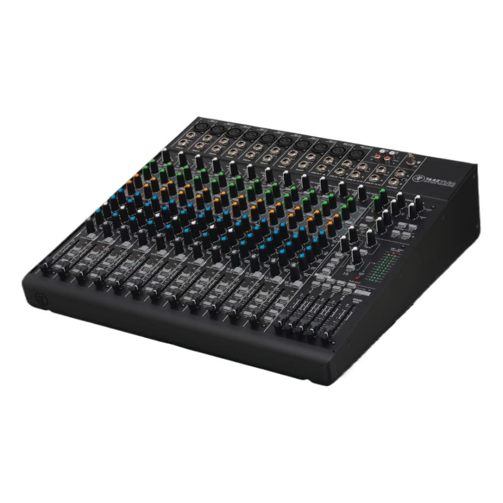• 16-kanałowy mikser analogowy. 10 przedwzmacniaczy mikrofonowych Onyx, Zasilanie fantomowe, Wybieralne wejścia instrumentalne, 3-pasmowy korektor (80Hz, 2.5kHz, 12kHz), Filtr górnoprzepustowy 18 dB/okt. 75 Hz