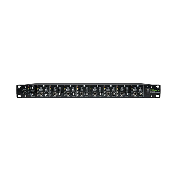 - Rackowy wzmacniacz słuchawkowy, 8 kanałów, 2 wyjścia słuchawkowe (łącznie 16 wyjść 1/4 in. TRS), 2 wejścia stereo u, 8 wejść AUX, 7-segmentowe LED na kanał igłówne, przełączniki wejścia oraz trybu stereo/mono, montażu w racku