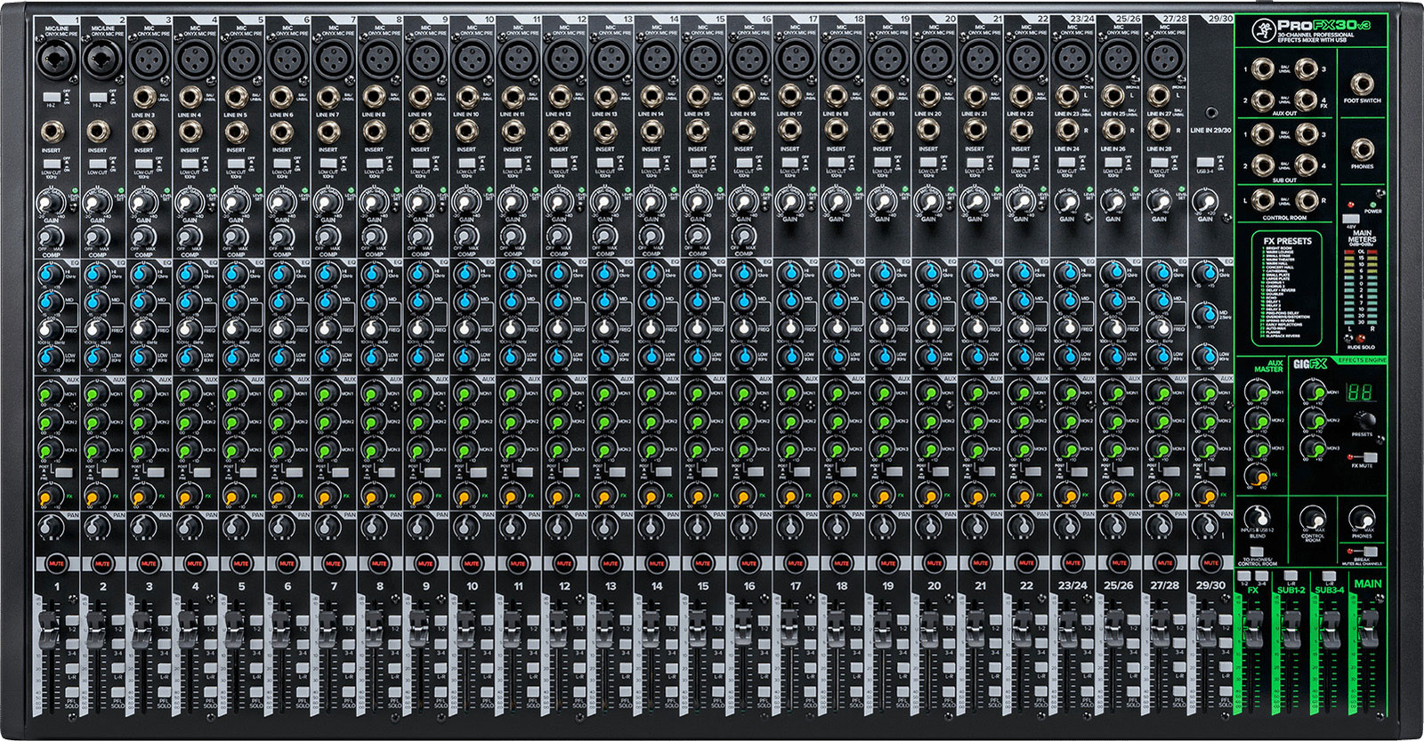 Mikser, 30 wejść, 25 preampów Onyx, 24 efekty GigFX, interfejs USB 2x4 24-bit/192 kHz, insert 1–22, kompresja 1–16, 3-pasmowy EQ z półparametrycznym mid, AUX x4, sub x4, wejście 3,5 mm, footswitch, XLR i TRS, metalowa obudowa