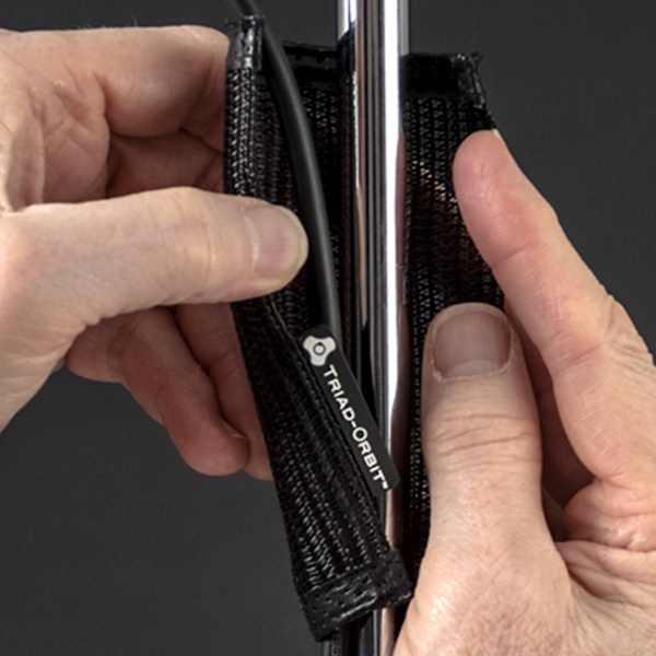 Zachodzące na siebie krawędzie rurek Cable Control zapewniają łatwy montaż, pewne utrzymanie i płynny ruch kabli w opasce.
